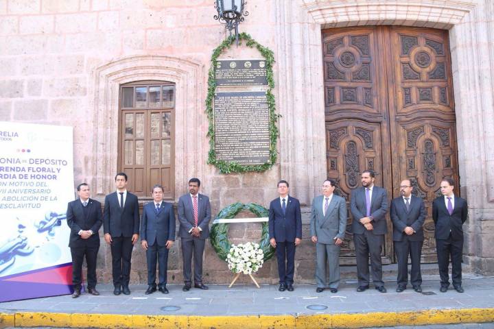 NOTICIAS 19/10/2017Autoridades municipales conmemoran Aniversario de la Abolición de la EsclavitudCon la tradicional Ceremonia de depósito de ofrenda floral y guardia de honor, autoridades de los tres órdenes de gobierno, encabezadas por el Director del Colegio de Morelia, Alejandro Amante Urbina, conmemoraron el CCVII Aniversario de la Abolición de la Esclavitud en Valladolid, hoy Morelia.