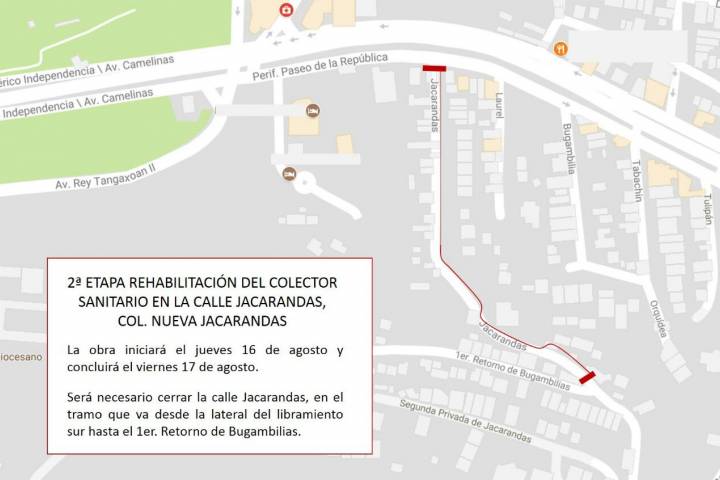 Los trabajos iniciarán este jueves a las 08:00 horas, siendo necesario cerrar la calle Jacarandas, en... Ver más...