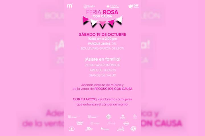 NOTICIAS 18/10/2024DIF Morelia invita a la Feria Rosa con causa, para apoyar a mujeres que enfrentan cáncer de mama El DIF Morelia, que encabeza la Presidenta Honoraria, Paola Delgadillo Hernández, invita a todas las familias a participar en la Feria Rosa con causa, con motivo del Día Internacional de la lucha contra el cáncer de mama. Este evento, que forma parte de la campaña Prevenir es Vivir "Tu salud importa más", se realizará mañana, sábado 19 de octubre, en el Parque Lineal del Boulevard García de León, de 10:00 am a 2:00 pm.
