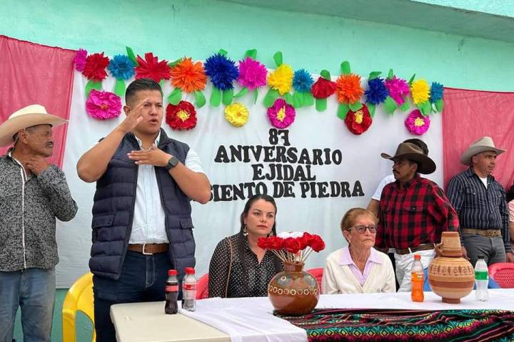 Al participar en el 87 Aniversario del Ejidal Asiento de Piedra, Víctor Zurita reconoció el esfuerzo ... Ver más...