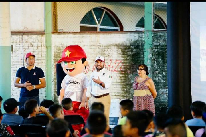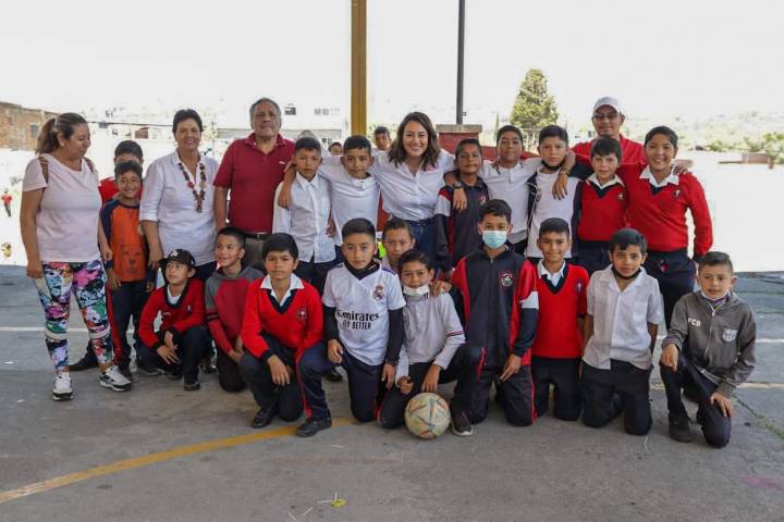 Al visitar la primaria Benito Juárez en la que hizo entrega de uniformes de futbol para su participación ... Ver más...