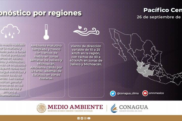 Pronósticos del Servicio Meteorológico Nacional indican lluvias puntuales fuertes, principalmente por las tardes, en gran parte de la entidad, por lo que se pide a la población continuar con las medidas ... Ver más...