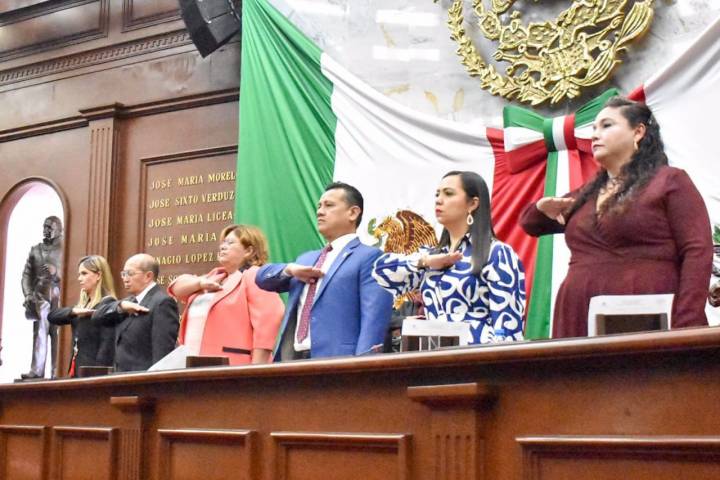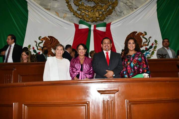 Durante la sesión solemne, previo a la declaratoria de apertura, las diputadas Julieta García Zepeda, Eréndira Isauro Hernández, Daniela de los Santos Torres, Liz Alejandra Her... Ver más...