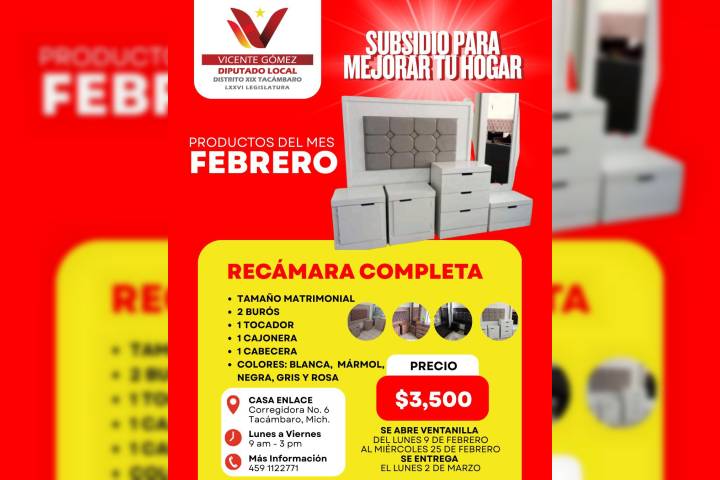 NOTICIAS 09/02/2026Casa Enlace del Dip. Vicente Gómez Núñez abre nueva ventanilla de Programa de Apoyos Subsidiados Con la finalidad de atender las solicitudes ciudadanas y apoyar la economía familiar, se abrió una nueva ventanilla para el registro de las personas interesadas en el subsidio de productos y materiales, informó el diputado por el Distrito XIX con sede en Tacámbaro, Vicente Gómez Núñez.