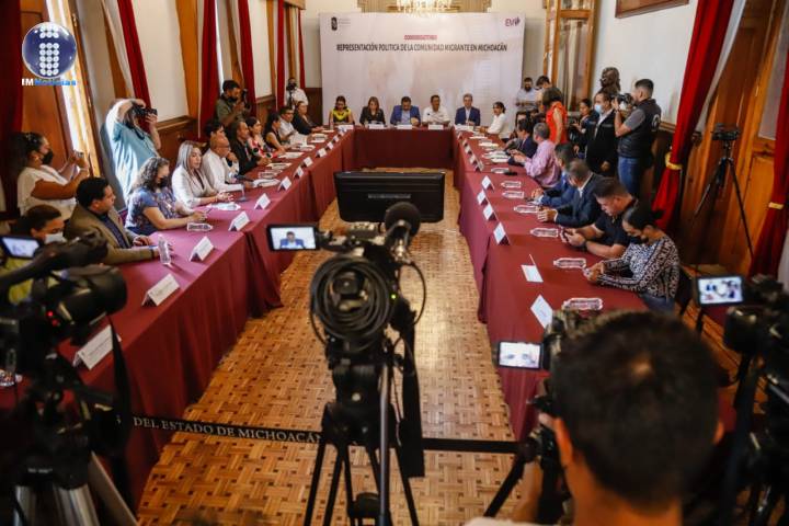 NOTICIAS 23/05/2022Construir la figura de diputado migrante con las voces de los sectores involucrados, el objetivo: diputadosCon el objetivo de fortalecer y enriquecer la iniciativa que pretende que una persona migrante pueda incorporarse como legislador en el Congreso local, los diputados Víctor Manríquez, presidente, Eréndira Isauro y Jesús Hernández, integrantes, de la Comisión de Migración llevaron a cabo el Conversatorio denominado "Representación Política de la Comunidad Migrante en Michoacán".