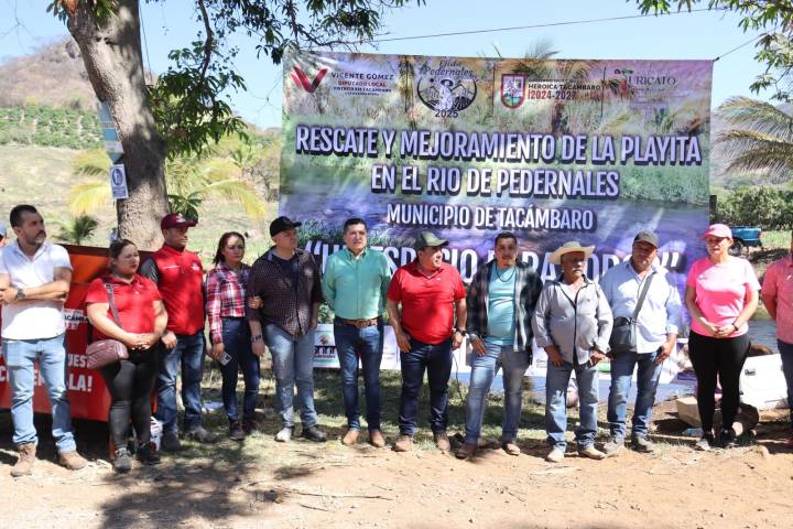 NOTICIAS 29/03/2025Encabeza Vicente Gómez limpieza de "La Playita" en Pedernales Con la finalidad de coadyuvar en el cuidado y preservación de los recursos naturales, se realizó el rescate y mejoramiento de La Playita en el río Pedernales del municipio de Tacámbaro, acción que se efectuó a través de la Casa Enlace del diputado Vicente Gómez Núñez.