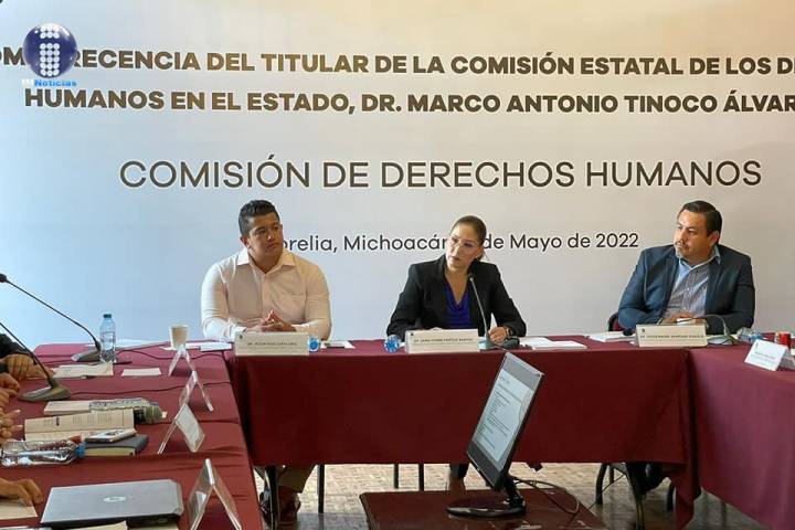 NOTICIAS 09/05/2022Comparece Ombudsman michoacano ante diputados integrantes de la Comisión de Derechos HumanosCon la finalidad de ampliar la información entregada en el pasado mes de octubre por parte del titular de la Comisión Estatal de Derechos Humanos, Marco Antonio Tinoco Álvarez, y resolver dudas que se tenían al respecto del manejo y la operación de este organismo, la y los diputados integrantes de la Comisión de Derechos Humanos del Congreso del Estado, lo citaron a comparecer ante ellos.