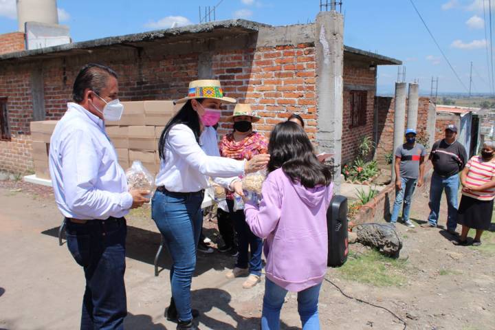 En Numarán visitó la colonia Santa Cruz en donde entregó 300 despensas a familias y 1000 desayunos escolares a niñas y niños; además de cinco toneladas de cemento para una jorn... Ver más...