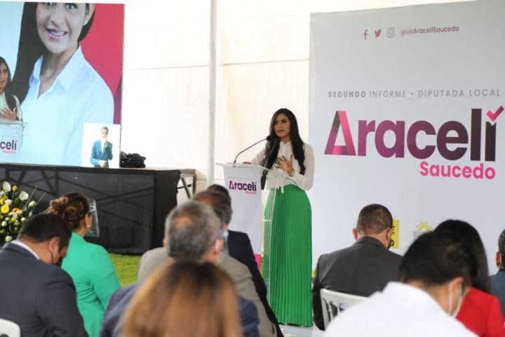 NOTICIAS 21/09/2020Resaltan trabajo legislativo de Araceli Saucedo en pro de grupos vulnerables y mujeresLa democracia es un valor que debemos de fortalecer y defender, subrayó enfática la diputada local Araceli Saucedo Reyes, al rendir su segundo informe de labores como integrante de la LXXIV Legislatura del Congreso del Estado.