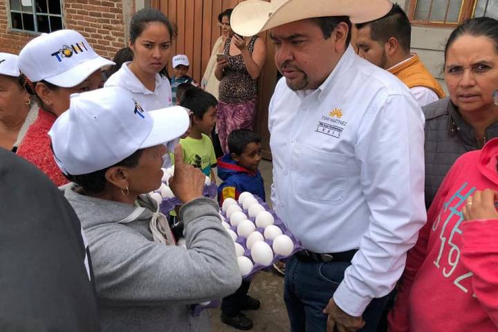 En apoyo a la economía familiar, el diputado Tony Martínez Soto ha distribuido más de 50 toneladas de huevo a la población del Distrito de Hidalgo y municipios vecinos, a través del programa Un Huevo por un Peso, aunado a los apoyos sociales como materiales de construcción, sillas de ruedas, becas y medicamentos, con lo que han resultado favorecidas miles de familias.