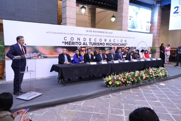 NOTICIAS 26/11/2024Congreso del Estado entrega condecoración "Mérito al Turismo Michoacano"El empresario forestal Roberto Molina Garduño fue condecorado por el Congreso del Estado con el "Mérito al Turismo Michoacano" por su destacada labor como promotor turístico de la entidad quien ha tenido como principal proyecto difundir pero también conservar el hábitat de la mariposa monarca ubicado en el Ejido el Rosario, en el oriente del Estado.