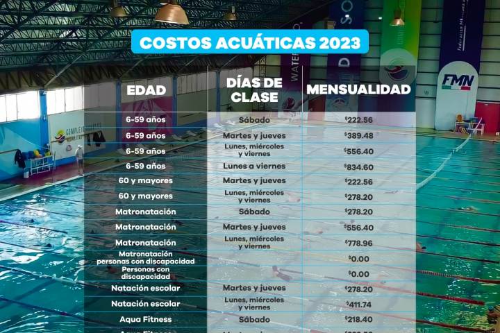 NOTICIAS 03/01/2023IMCUFIDE mantiene sin costo clases de natación para personas con discapacidad El Instituto Municipal de Cultura FÃsica y Deporte (Imcufide), retoma a partir de este lunes 09 de enero el proceso de inscripciones de su Curso Anual de Natación 2023 para los complejos acuáticos Bicentenario y "Medallistas ParalÃmpicos", de la Unidad Deportiva Morelos-Indeco, el cual ofrecerá clases regulares de natación, aquazumba y sesiones especiales a personas con discapacidad, asà como para todos los morelianos a partir de los 8 a... Ver más...
