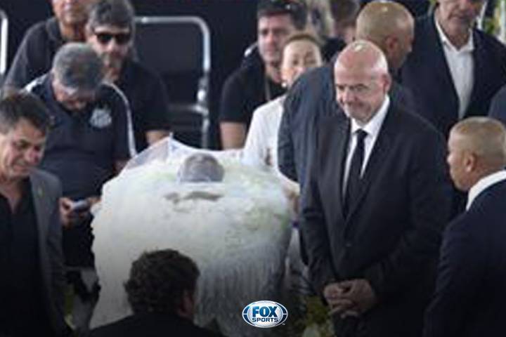 El presidente de la FIFA, Gianni Infantino, presentó sus últimos respetos a Pelé en el acto celebrado en memoria del legendario brasileño en el estadio Vila Belmiro, cancha del Santos FC.