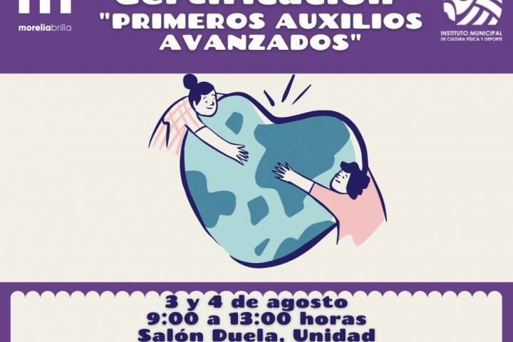 NOTICIAS 29/07/2022Busca IMCUFIDE certificación de "Morelia Cardio-Segura" Con el propósito de fortalecer el área médica del Instituto Municipal de Cultura Física y Deporte (Imcufide), los días 3 y 4 de agosto, la Dirección de Salud Municipal, brindará una certificación de "Primeros Auxilios Avanzados", al personal de la paramunicipal en la búsqueda por alcanzar el grado de "Morelia Cardio-Segura", la cual tendrá lugar en la Unidad Deportiva Morelos-INDECO.
