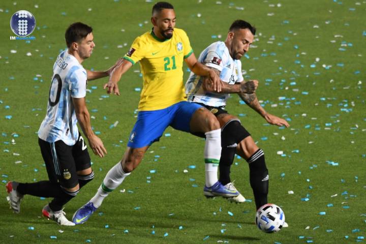 El inicio de la primera parte fue a pura intensidad. Argentina intentó presionar arriba pero Brasil logró hacerse de la posesión de la pelota y tuvo sus chances. Primero, fue Vinicus quien quedó frente al arco, pero no pudo darle una buena dirección al remate. Y, minutos más tarde, Matheus Cunha... Ver más...
