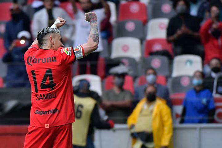 NOTICIAS 18/08/2021Empata el diablo en casaIan González marcó su primer gol como Escarlata, tras peinar un remate de Miguel Barbieri.