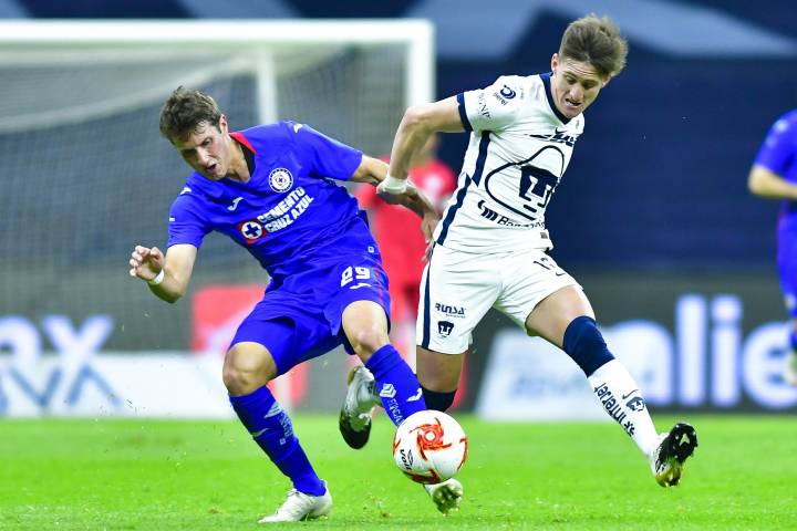 NOTICIAS 08/11/2020Con garra azul y oroEn un encuentro de emociones y acciones ofensivas en el Estadio Azteca, Cruz Azul y Pumas se brindaron al máximo en el último compromiso de la Fase Regular de la Liga MX. Con doblete de Juan Dinenno y un tanto de descuento de Orbelín Pineda, los visitantes se llevaron los tres puntos, para ubicarse en el segundo lugar general con 32 efectivos, mientras que los celestes se quedaron con 29.