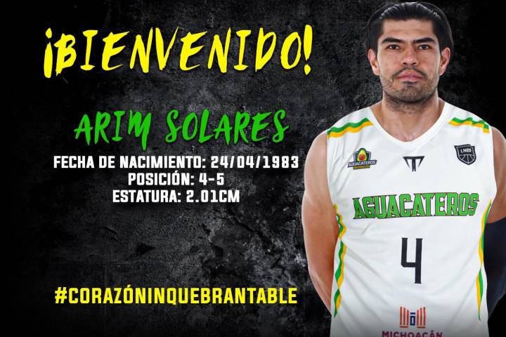 NOTICIAS 03/11/2019Regresa Solares a AguacaterosLa Directiva del Club de Básquetbol Aguacateros de Michoacán dio a conocer que el ala- pívot Arim Solares regresa para integrarse al equipo en la segunda vuelta de la Temporada regular 2019-2020 de la Liga Nacional de Baloncesto Profesional (LNBP).