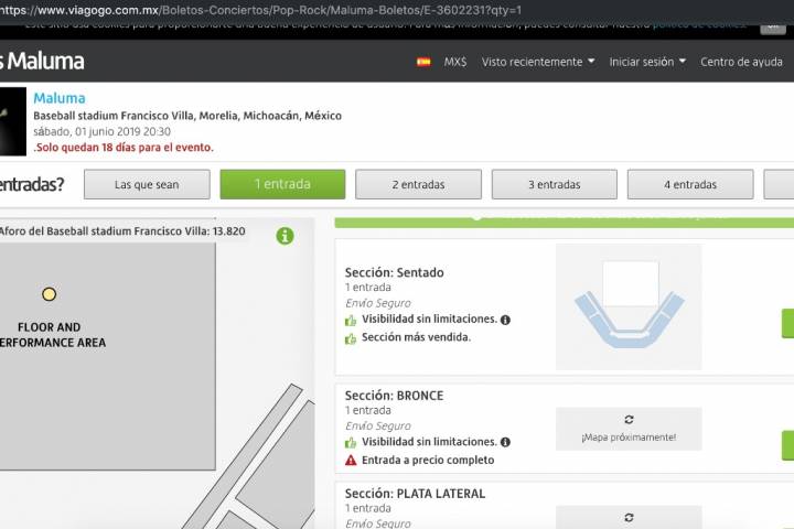 La promotora no se hará responsable por boletos adquiridos en páginas como Stubhub y Viagogo, las cuales ya están identificadas como "revendedoras" de entradas y con precios excesivamente altos que no se asemejan con los est... Ver más...