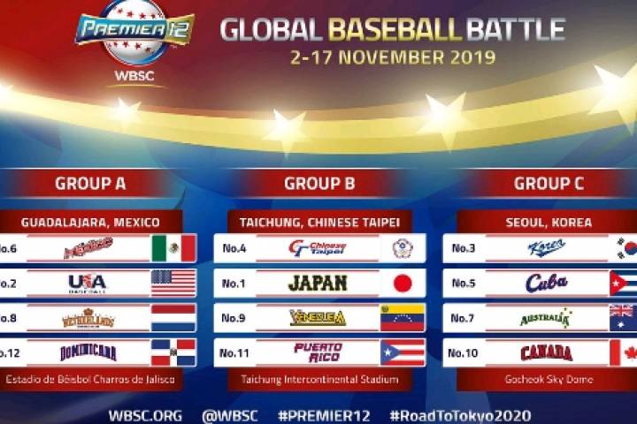 México (sexto del orbe) tendrá de rivales a Estados Unidos (dos), Holanda (8) y República Dominicana (12) en el grupo A con sede en la ciudad de Guadalajara, Jalisco, dentro del Premier 12, clasificatorio a los Juegos Olímpicos Tokio 2020, anunció hoy la Confederación Mundial de Beisbol y Softbol (WBSC, por sus siglas en inglés).
