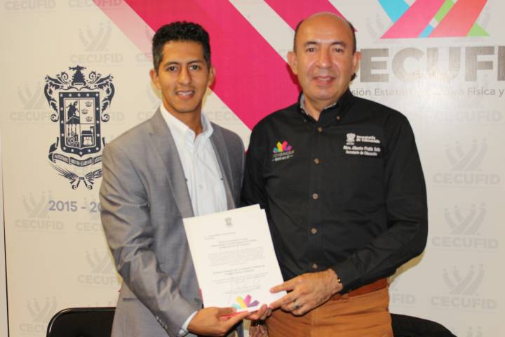 · El secretario de Educación en el Estado, Alberto Frutis Solís, entregó el nombramiento como nuevo director a Jorge Abdiel Díaz Acevedo
