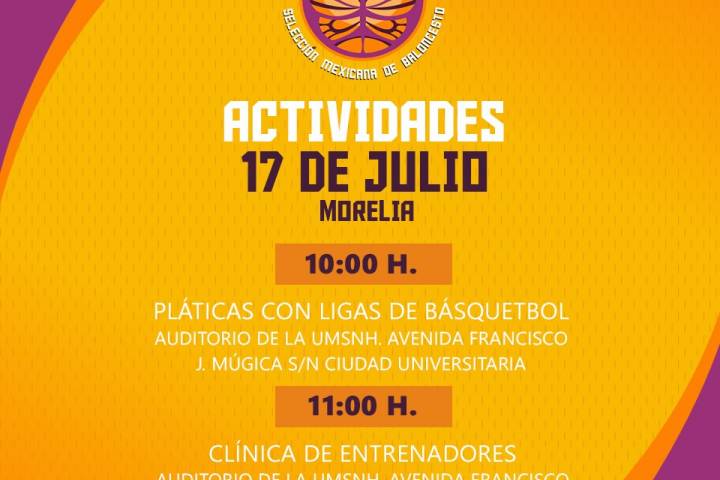 NOTICIAS 17/07/2018Selección Nacional de Básquetbol se reunirá con equipos y entrenadores locales Como parte de las actividades del Campamento Internacional de preparación que desarrolla la Selección Nacional de Básquetbol en nuestra entidad, este martes los llamados 12 Guerreros sostendrán encuentros con talentos michoacanos en este deporte ráfaga.