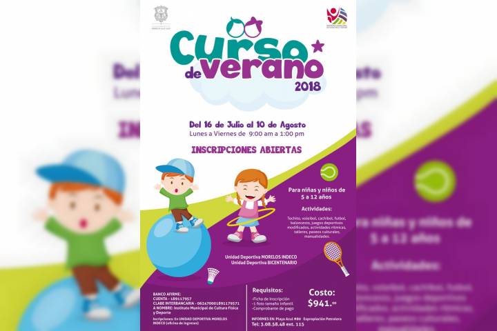 NOTICIAS 08/07/2018Continúa proceso de inscripción para los Cursos de Verano IMDE 2018 Comprometido con la niñez y juventud de la ciudad y sus tenencias, el Ayuntamiento de Morelia, a través del Instituto Municipal de Cultura Física y Deporte (IMDE), continúa el proceso de inscripción para el Curso de Verano Recreativo y de Natación 2018, a desarrollarse del 16 de julio al 10 de agosto y 23 de julio al 10 de agosto, respectivamente.