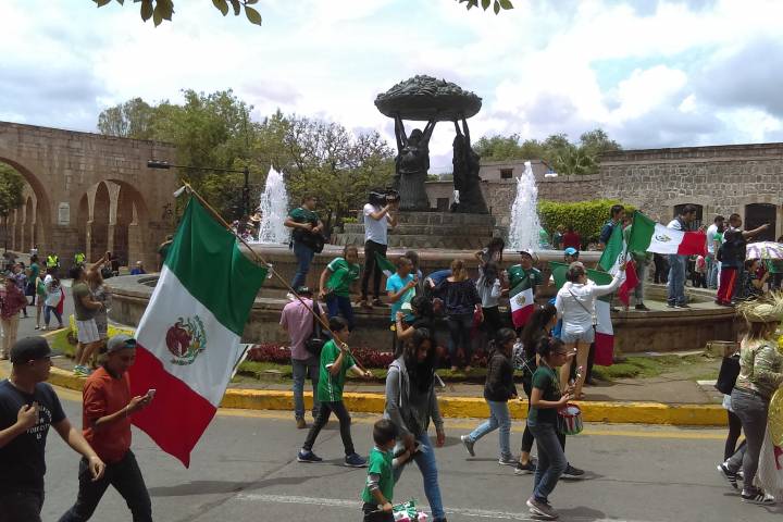 NOTICIAS 17/06/2018Celebra afición triunfo de México Con frases como "El Día del Padre les dimos en la Mad..." , aficionados al fútbol en Morelia festejaron en La Fuente de Las Tarascas el triunfo histórico conseguido por la Selección Mexicana 0-1 sobre el tetracampeon Alemania,dentro de la Copa del Mundo Rusia 2018.