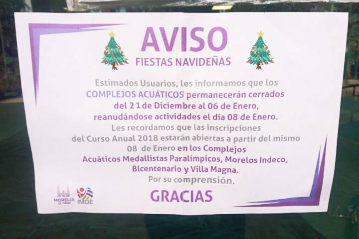 NOTICIAS 19/12/2017Cerrará IMDE sus unidades deportivas en fiestas decembrinas