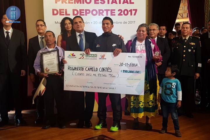 NOTICIAS 20/11/2017Entrega SAC Premio Estatal del Deporte 2017 En el marco del desfile cívico deportivo del CVII aniversario de la Revolución Mexicana, el gobernador del estado, Silvano Aureoles Conejo, hizo entrega del Premio Estatal del Deporte 2017, al canoista originario de la Isla de Urandén de Morelos, Rigoberto Camilo Cortés, el cual otorga la Comisión Nacional de Cultura Física y Deporte (Conade), y que consiste en 110 mil pesos en efectivo , una medalla y un reconocimiento.