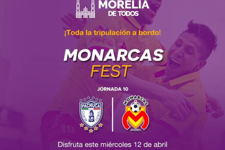 NOTICIAS 10/04/2017Plaza Jardín Morelos se vestirá de amarillo para apoyar a Monarcas Morelia El Ayuntamiento de Morelia que encabeza el Alcalde, Alfonso Martínez Alcázar en conjunto con el equipo Monarcas Morelia, invitan a la ciudadanía disfrutar del Monarcas Fest, este miércoles 12 de abril a partir de las 20:00 horas en la Plaza Jardín Morelos, lugar en donde se proyectará el partido contra los Tuzos del Pachuca.