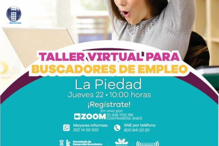 NOTICIAS 21/07/2021Realizarán taller para buscadores de empleo y reclutamiento en La Piedad Un taller virtual para buscadores de empleo y un reclutamiento tendrán lugar este jueves 22 de julio en la región La Piedad.