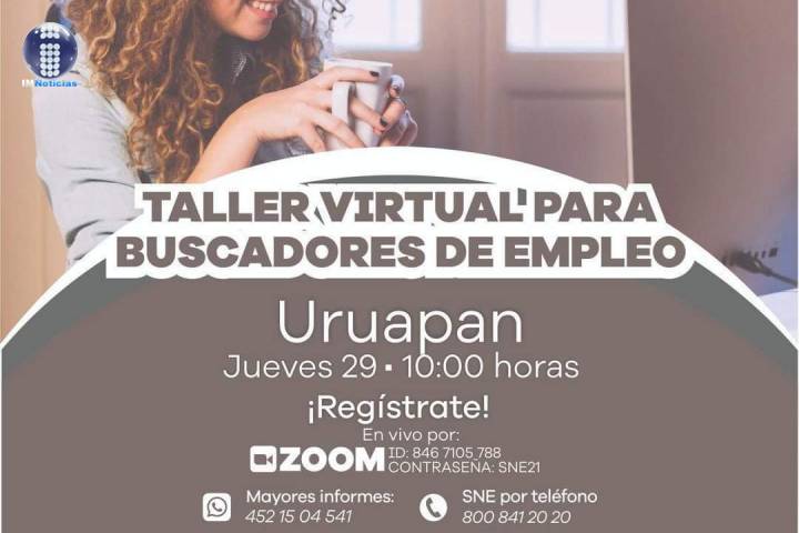 NOTICIAS 23/07/2021Ofrecerán capacitación a buscadores de empleo de Pátzcuaro, Morelia y Uruapan Para preparar a las personas que requieren colocarse en un trabajo, los días 27, 28 y 29 de julio se llevarán a cabo talleres para buscadores de empleo en las regiones Pátzcuaro, Morelia y Uruapan.