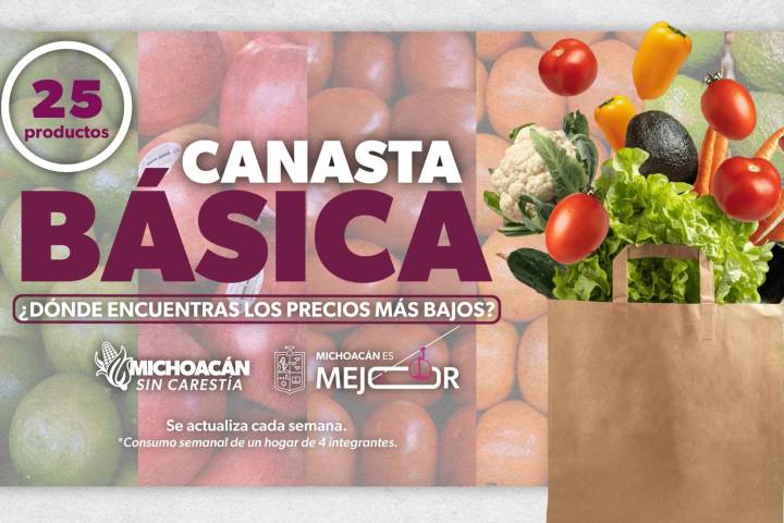NOTICIAS 02/10/2024En Morelia se vende la canasta básica en menos de mil pesos: Sedeco La Secretaría de Desarrollo Económico (Sedeco) informó que el mercado de abastos de Morelia tiene el mejor precio de los 25 productos de la canasta básica con 986 pesos, como parte del monitoreo semanal que realiza.