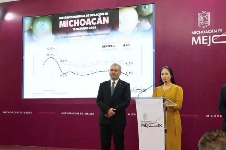 NOTICIAS 14/10/2024Baja la inflación en alimentos 0.9 % en Michoacán: Sedeco Las inflaciones en alimentos y general registran un decrecimiento en Michoacán; en el periodo de julio a septiembre la baja es del 0.9 y 2.5 por ciento, respectivamente, informó el secretario de Desarrollo Económico, Claudio Méndez Fernández.