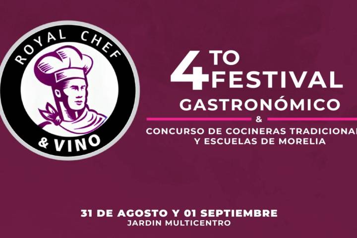 NOTICIAS 27/08/2024Cocina tradicional, arte y cultura te esperan este fin de semana en Morelia Los dÃas sábado 31 de agosto y domingo 1 de septiembre se realizará el Festival Gastronómico Royal Chef, en su cuarta edición, el cual contará con más de 65 expositores de cocina tradicional, vino, cerveza, mezcal, arte, cultura y un concurso gastronómico.