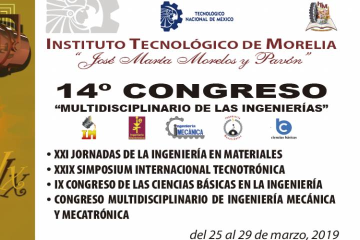 Del 25 al 29 de marzo, el Instituto Tecnológico de Morelia, "José María Morelos y Pavón", realizará el 14º Congreso Multidisciplinario de las Ingenierías 2019, que tiene como objetivo motivar el interés de la comunidad tecnológica por el conocimiento científico y tecnológico a través de diferentes actividades académicas relacionadas con las Ciencias Básicas, Ingeniería Mecánica, Ingeniería Mecatrónica, Materiales y Electróni... Ver más...