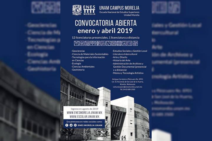 La Escuela Nacional de Estudios Superiores, Unidad Morelia, ofrece 12 programas de licenciatura: Geociencias; Ciencia de Materiales Sustentables; Tecnologías para la Información en Ciencias; Ecología; Ciencias Ambientales; Geohistoria; Est... Ver más...
