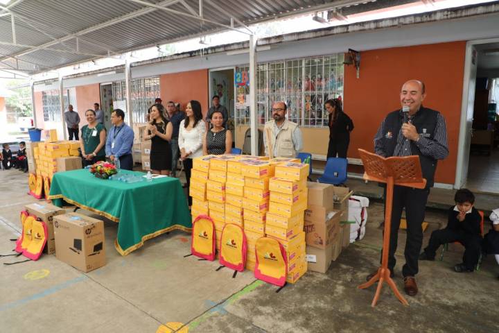 En esta visita, el encargado de la polÃtica educativa entregó 160 paquetes de útiles escolares y ... Ver más...