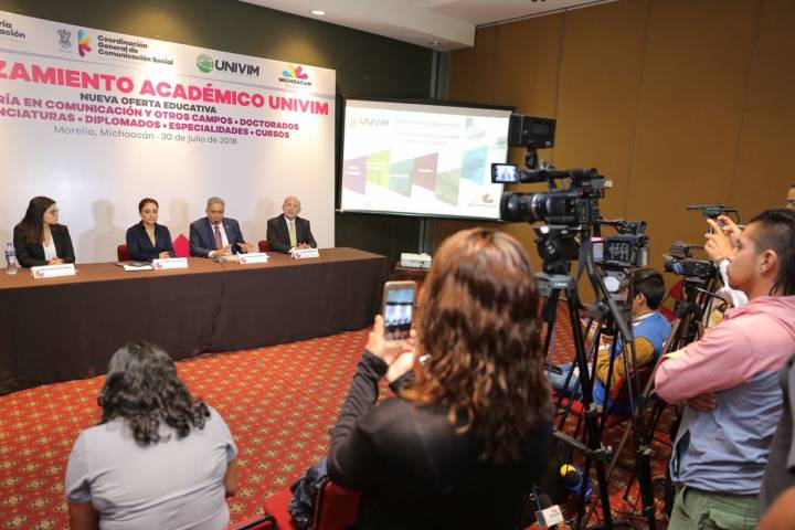 NOTICIAS 31/07/2018Ofrece Univim Maestría en Comunicación; con costos accesibles - Bajo la preocupación y el compromiso que mantiene el Gobierno del Estado de profesionalizar y capacitar a comunicadores, comunicadoras y periodistas, la Coordinación General de Comunicación Social en conjunto con la Universidad Virtual de Michoacán (Univim), lograron la creación de la Maestría en Comunicación en esta Universidad, accesible en costos para las y los interesados.