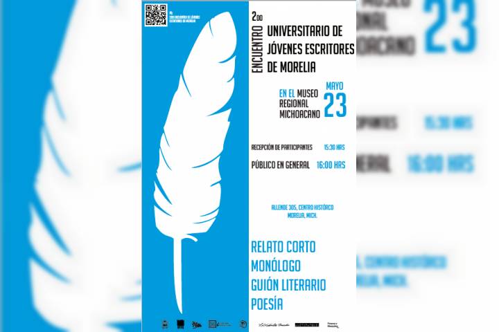 Mañana 23 de mayo, se desarrollará en el Museo Regional de Michoacán (Allende #305 Centro Histórico) el 2º Encuentro Universitario de Jóvenes Escritores de Morelia que reúne a más de veinte participantes quienes presentarán su trabajo literario en poesía, cuento y monólogo. La entrada es libre a todo público.