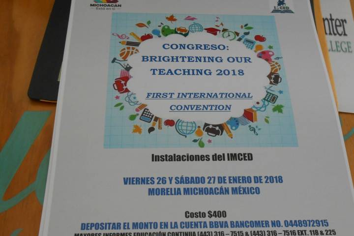 NOTICIAS 23/01/2018Anuncia IMCED Congreso de Inglés Con el propósito de formar teórica y prácticamente a las y los estudiantes de la Licenciatura en Educación Media Superior con especialidad en Inglés, en las nuevas tendencias de la enseñanza de los idiomas, el Instituto Michoacano de Ciencias de la Educación (IMCED), a través de su Centro de Idiomas, organiza el congreso "Brightening our teaching 2018. First international convention".