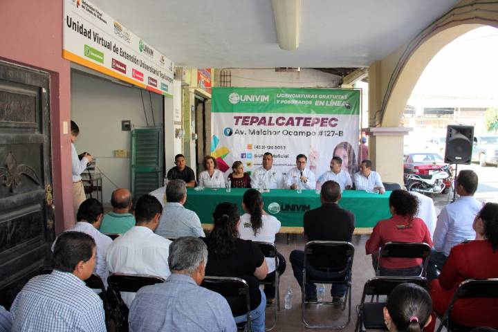 NOTICIAS 01/12/2017Los servicios educativos de la Univim llegan a Tepalcatepec En cumplimiento a la solicitud que habitantes de Tepalcatepec le hicieran al Gobernador Silvano Aureoles Conejo para que en ese municipio se instalara una universidad pública, este jueves fue inaugurada una Unidad Virtual de Extensión Universitaria (UVEU) de la Universidad Virtual del Estado de Michoacán (Univim).