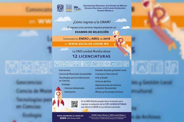 La Escuela Nacional de Estudios Superiores, Unidad Morelia, oferta 12 programas de licenciatura: Geociencias; Ciencia de Materiales Sustentables; Tecnologías para la Información en Ciencias; Ecología; Ciencias Ambi... Ver más...