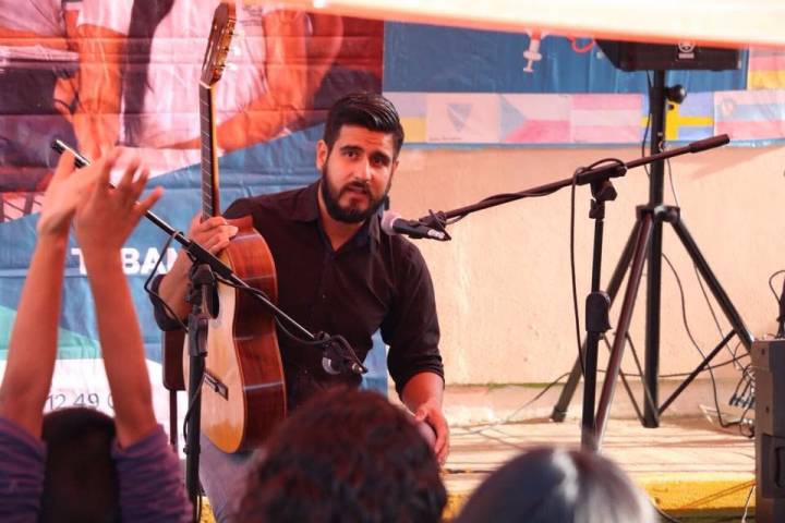 El evento se llevó a cabo en la Casa Ejidal de La Aldea, donde docentes y estudiantes del Telebachillerato Michoacán, encabezados por su director general, Juan Carlos Barragán Vélez disfrutaron de la presentación de los guitarristas Raúl y Daniel Olmos.