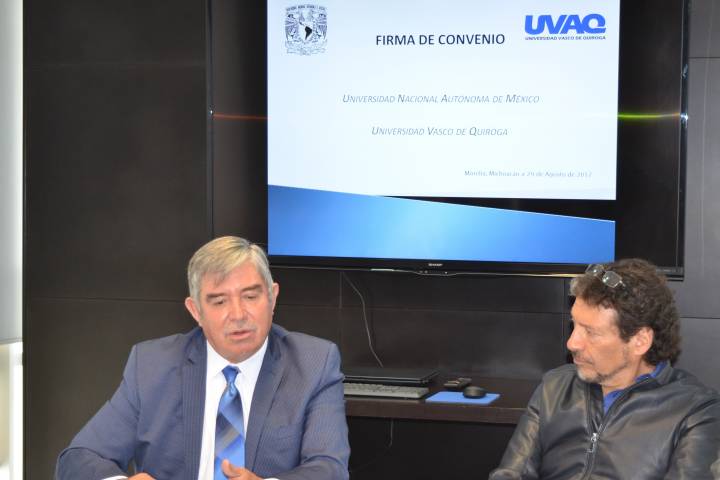 Con la intención de dar continuidad a los trabajos de colaboración educativa, la Universidad Nacional Autónoma de México Campus Morelia (UNAM) firma un segundo convenio de colaboración con la Universidad Vasco de Quiroga (UVAQ).