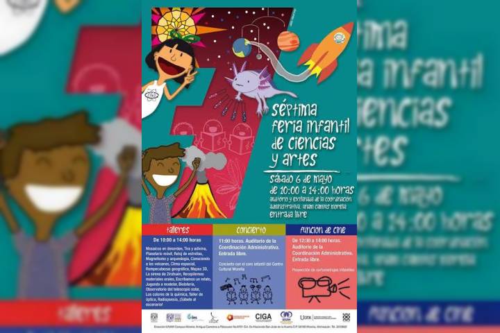 La UNAM Campus Morelia invita a los niños a la Séptima Feria Infantil de Ciencias y Artes, el próximo 6 de mayo, en las instalaciones del campus. Se ofrecerán 23 actividades y talleres de manera gratuita, organizados por la comunidad universitaria, para los pequeños.
