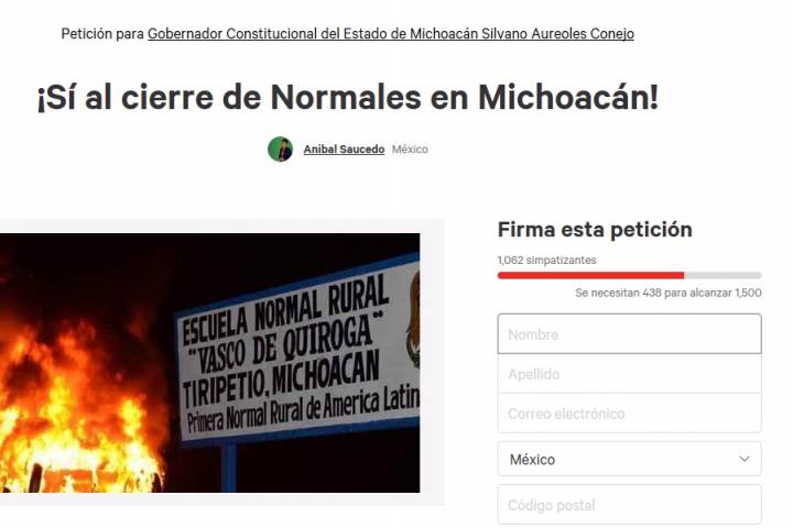 A través de la plataforma Change.org, se busca la recolección de firmas para exigir al gobernador de Michoacán, Silvano Aureoles, el cierre de las escuelas Normales en la entidad.