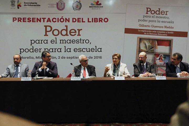 NOTICIAS 03/09/2016Presentan libro "Poder para el maestro, poder para la escuela" A fin de abordar el tema de la reforma educativa desde una perspectiva académica, de manera coordinada, autoridades de la Secretaría de Educación en el Estado (SEE), de la Universidad Michoacana de San Nicolás de Hidalgo (UMSNH) y de la Universidad Latina de América (Unla); participaron en la presentación del libro titulado "Poder para el maestro, poder para la escuela", del autor Gilberto Guevara Niebla.