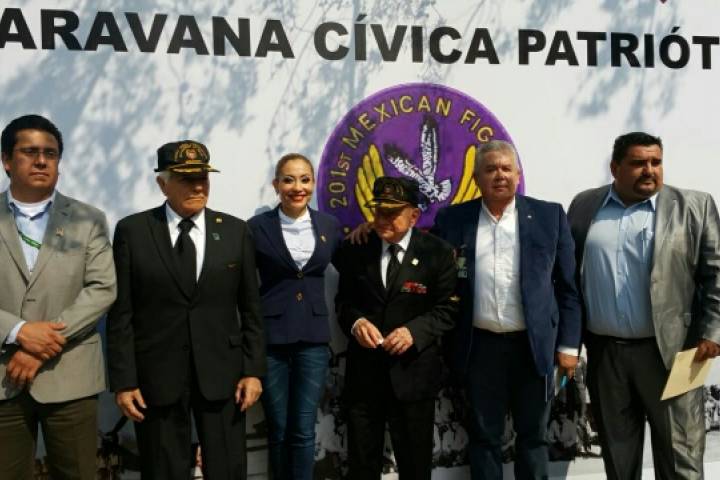 En el marco de la Caravana Cívico Patriótica, integrantes de la Agrupación Nacional de Sobrevivientes de la Fuerza Aérea Expedicionaria Mexicana Escuadrón 201, convivieron con estudiantes del Conalep Michoacán, plantel Morelia II.
